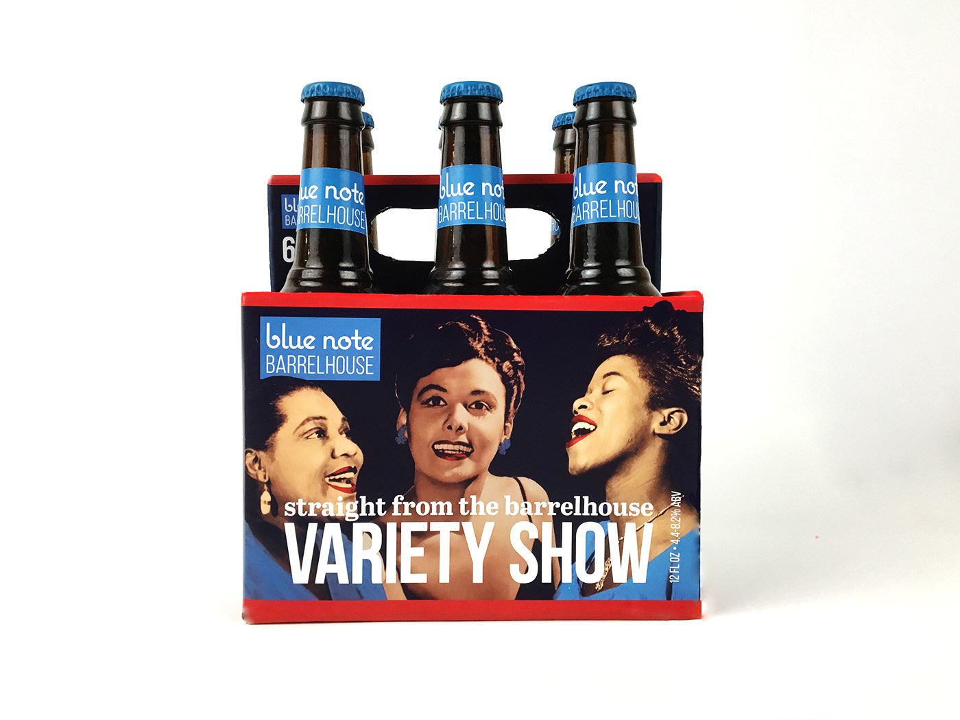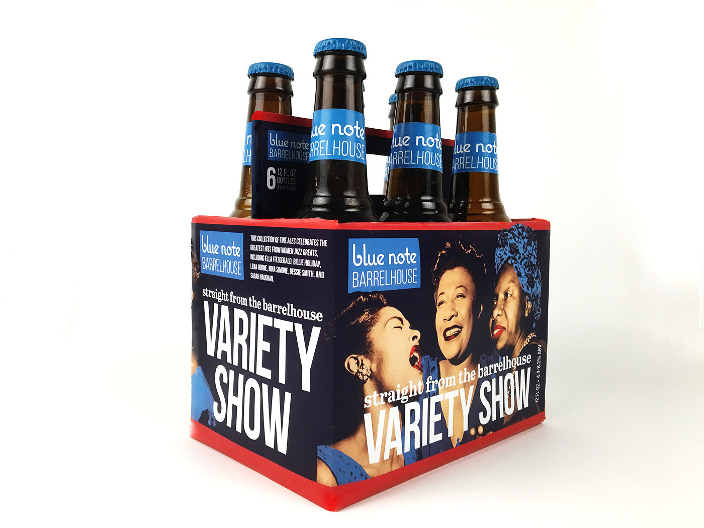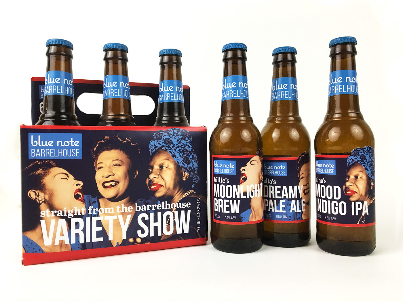 Package design for Blue Note Barrelhouse brand craft beer celebrating female jazz greats.