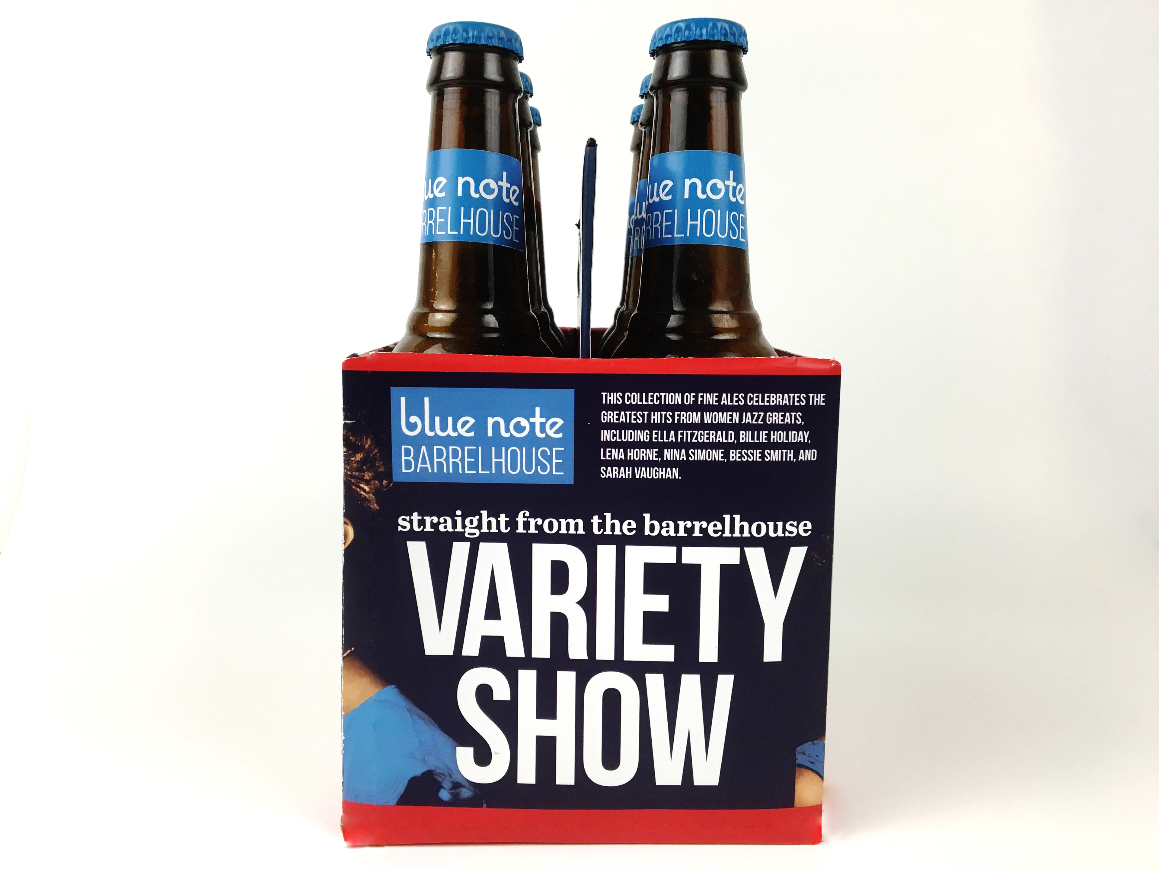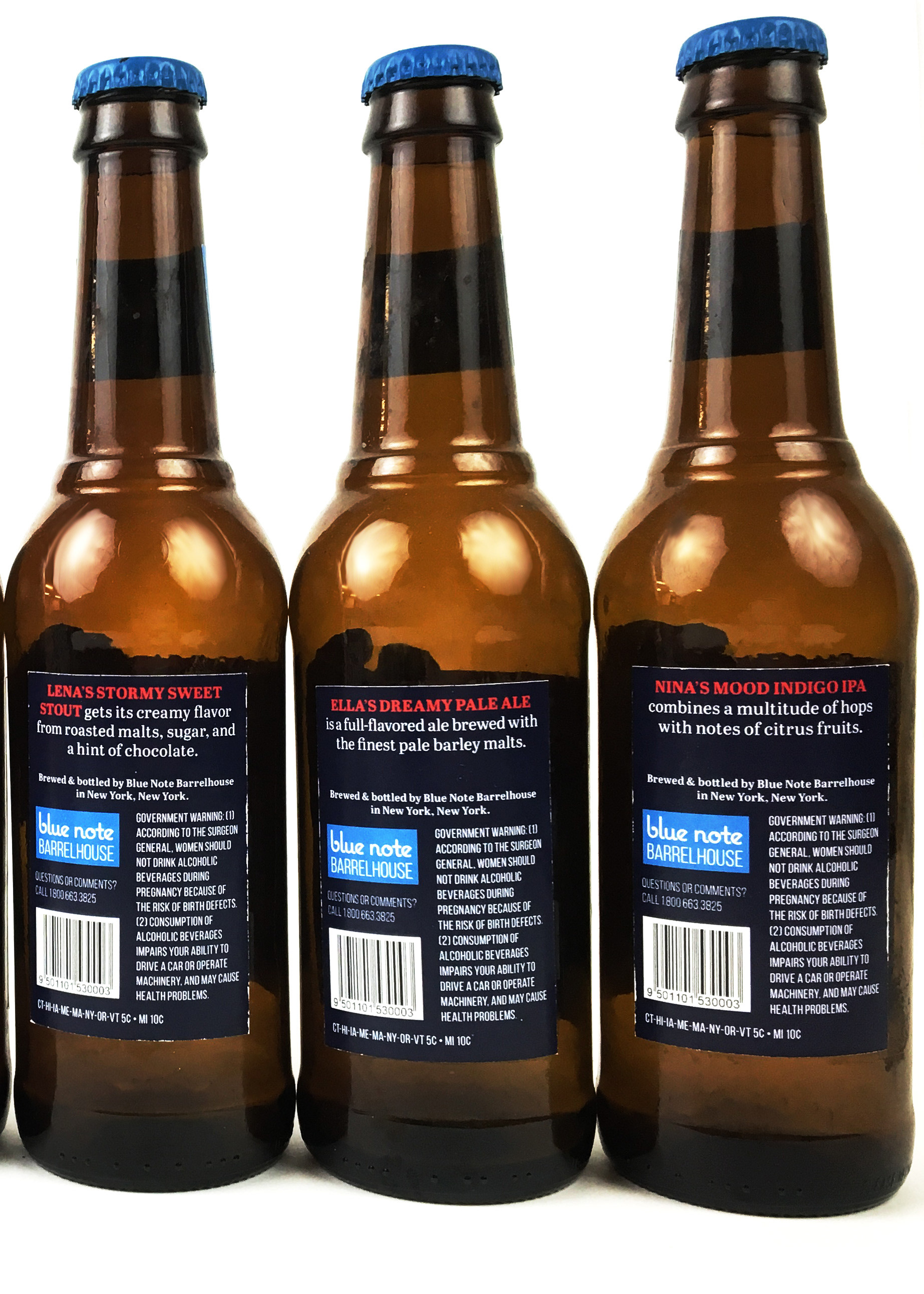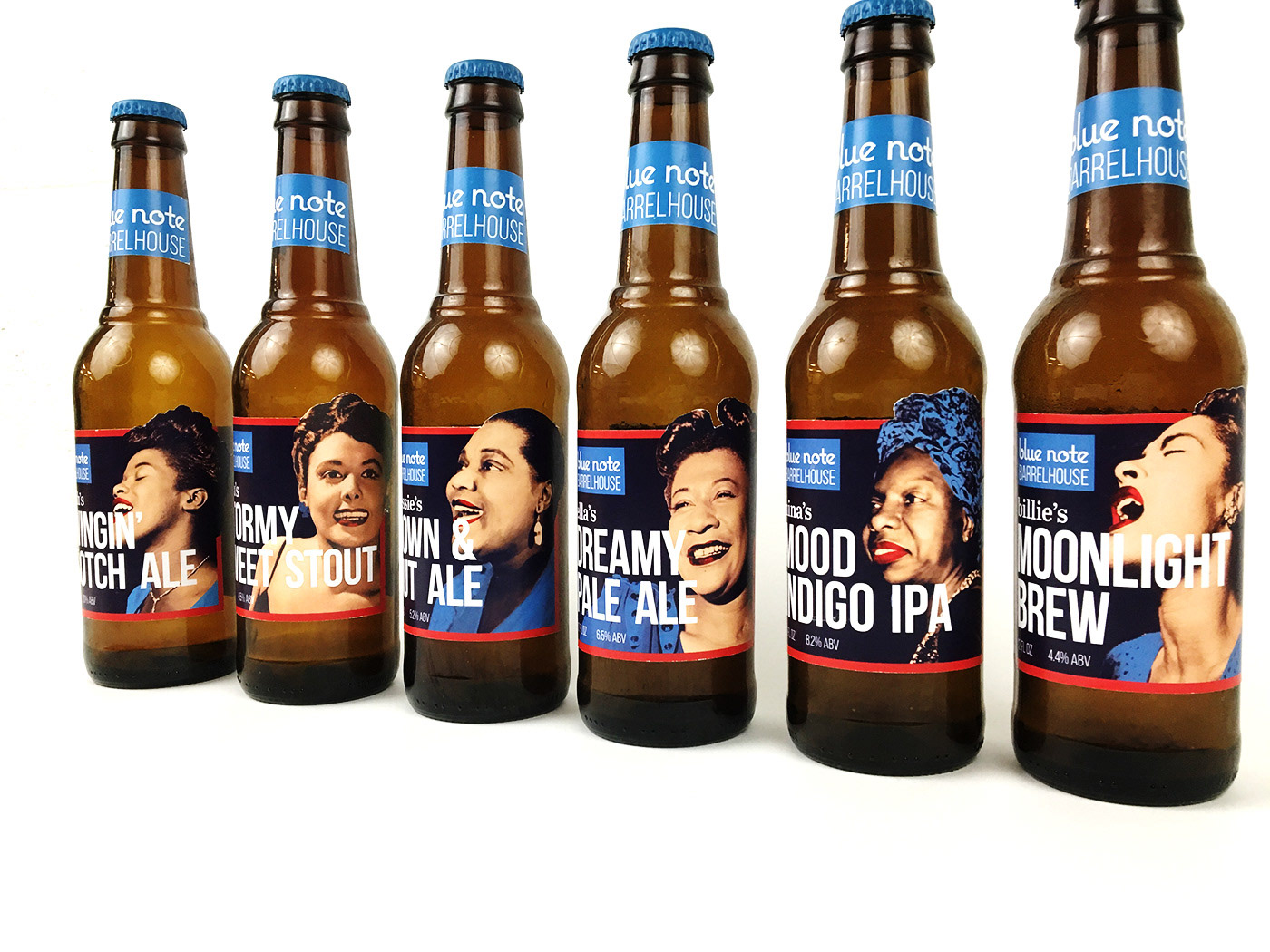 Package design for Blue Note Barrelhouse brand craft beer celebrating female jazz greats.